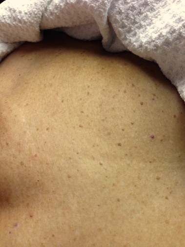 Client #1 Slightly Raised Light and Dark Flesh Buds and a Cherry Angioma